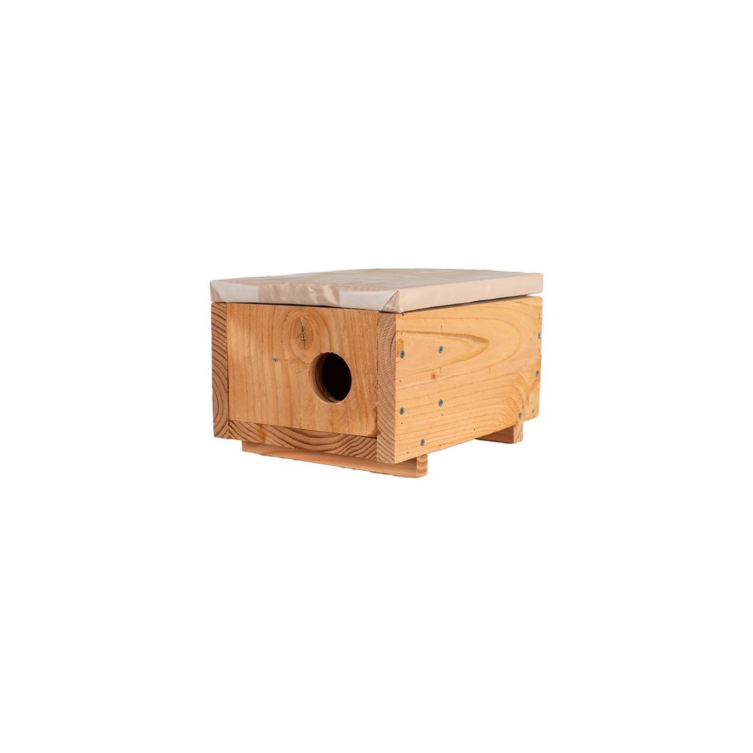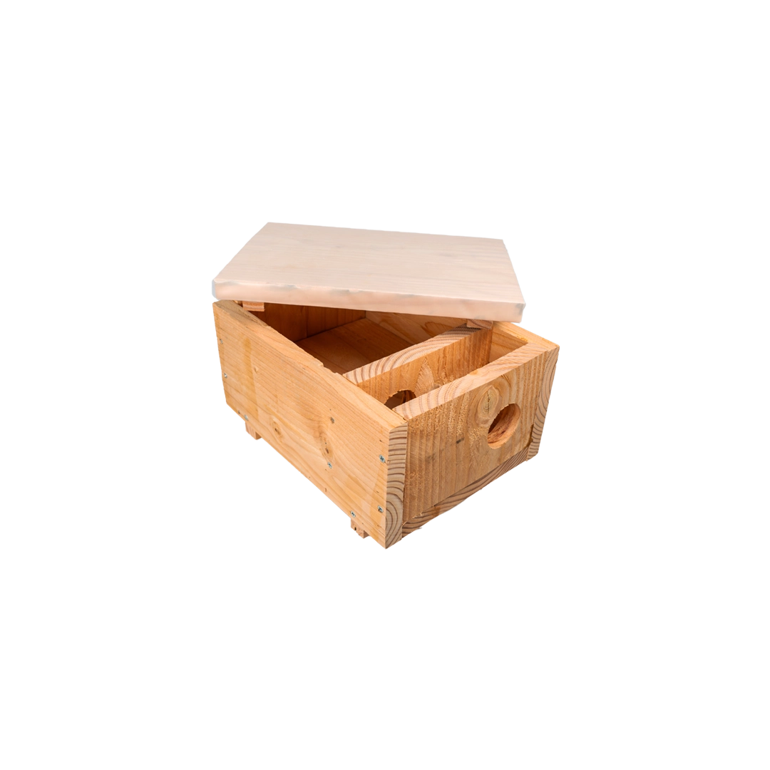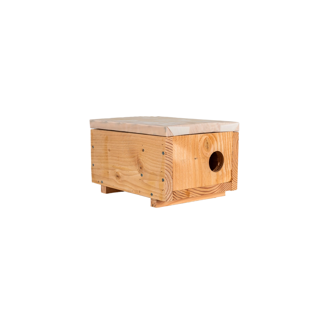 Met deze kleine marterkast bieden we een perfecte oplossing aan al je op zoek bent naar een nestkast voor een wezel. Onze marterkasten zijn op maat gemaakt om de behoeften van de beoogde soorten te vervullen. Door de diameter van de ingang en de grootte van de kast aan te passen, kunnen we de marterkasten perfect afstemmen op de behoeften van de beoogde diersoorten (bunzing, hermelijn of wezel).