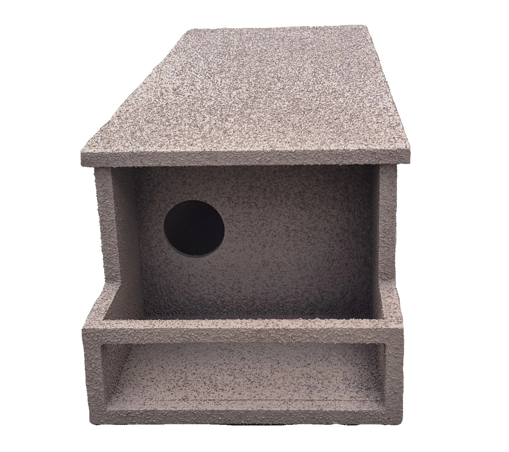 De nestkast blinkt uit in gebruiksgemak en veiligheid. Aan de achterzijde bevindt zich een schuifdeur, waardoor de kast na het broedseizoen eenvoudig schoongemaakt kan worden.