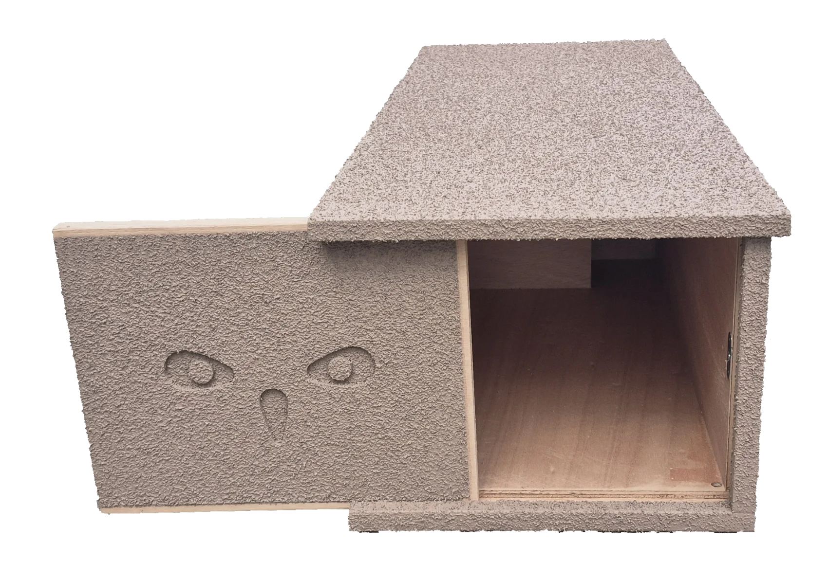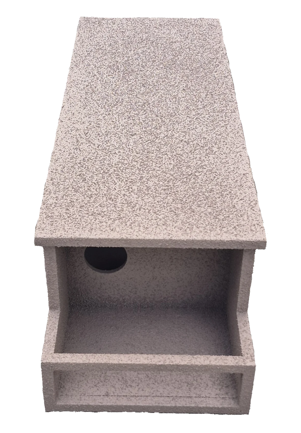 Steenuilenkast gemaakt van duurzaam watervast okoumé hout en ontworpen voor een veilige en comfortabele nestplaats voor de steenuil. De kast beschikt over één invliegopening aan één zijde, met een speciaal ontworpen ingang die bescherming biedt tegen predatoren zoals marters. Dankzij de indeling met meerdere kamers kunnen steenuilen zich beter terugtrekken en veilig nestelen.